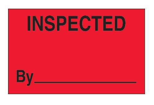 1.25" x 2" Fluorescent Red "Inspected" Labels