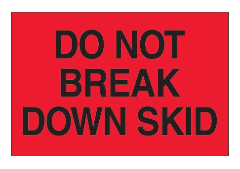 2" x 3" Fluorescent Red "Do Not Break Down Skid" Labels |