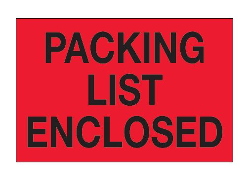 2" x 3" Fluorescent Red "Packing List Enclosed" Labels |