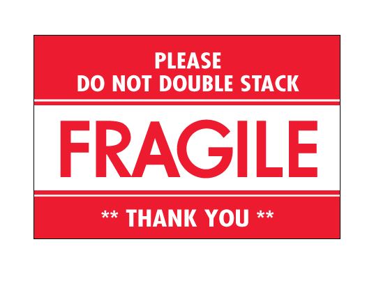 2" x 3" Red & White "Fragile - Do Not Double Stack" Labels |