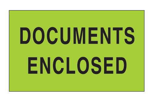 3" x 5" Fluorescent Green "Documents Enclosed" Labels |