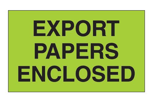 3" x 5" Fluorescent Green "Export Papers Enclosed" Labels |