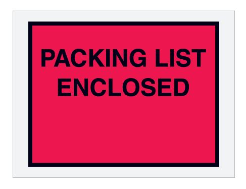• Full face, colored Packing List Envelopes are pre-printed with "Packing List Enclosed" on heavy 2 Mil poly
