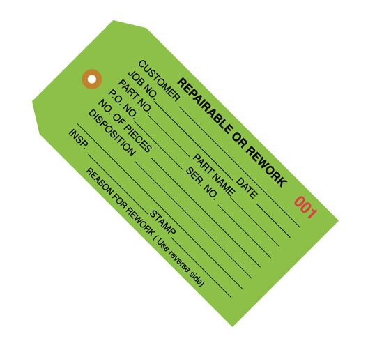 4.75" x 2.375" Green "Repairable or Rework" Inspection Tags
