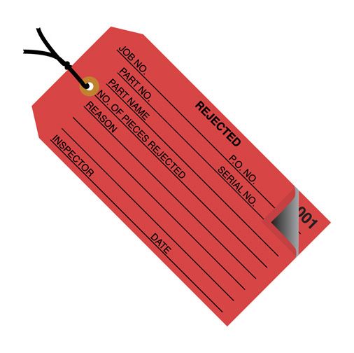 4.75" x 2.375" Red "Rejected" Inspection Tags - Numbered 001 - 499 - Pre-Strung |