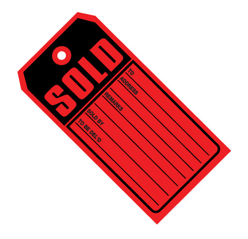 - Bright red tags identify SOLD items