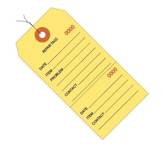 4.75" x 2.375" Yellow Repair Tags Consecutively Numbered - Pre-Wired |