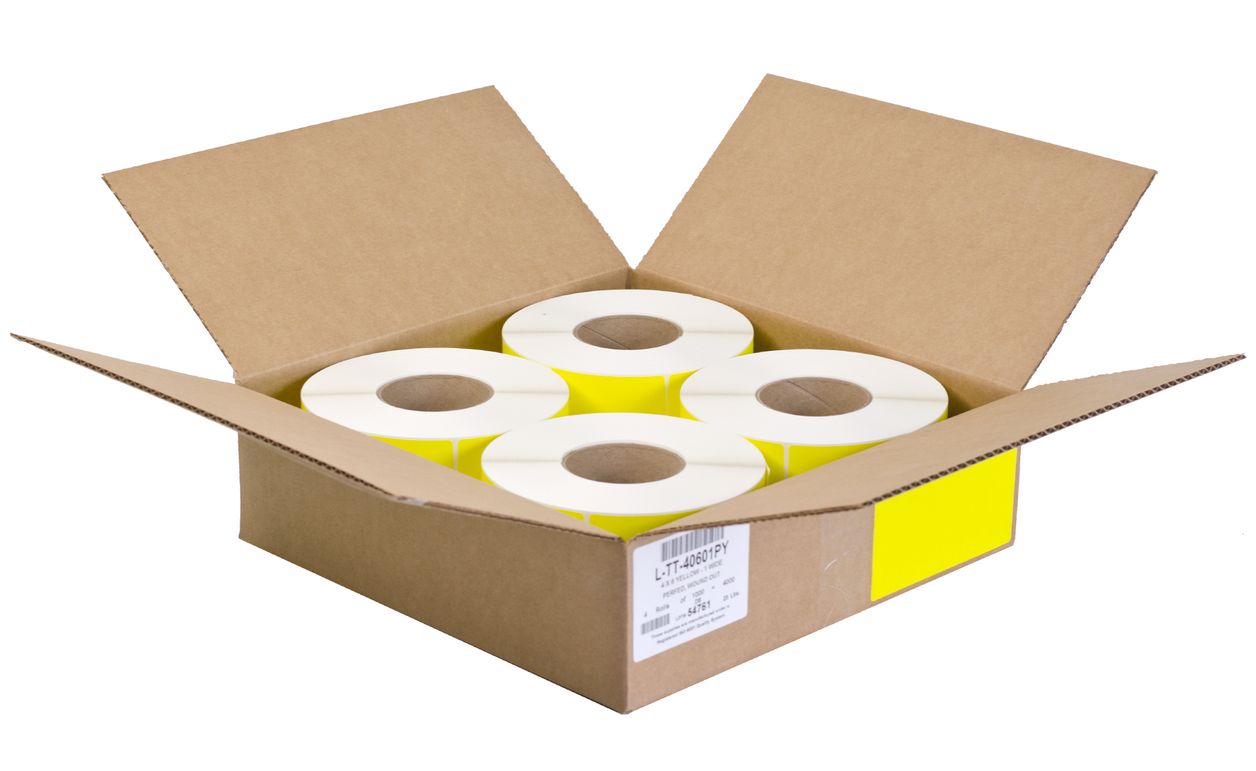 4" x 6" Yellow Thermal Transfer Labels Perforated - 1000 per Roll, 4 Rolls per Case |