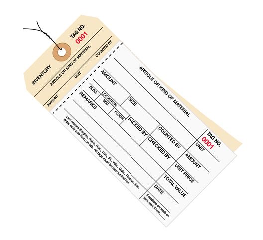 6.25" x 3.125" (3500-3999) Manila Inventory Tags 2 Part Carbonless Stub Style # 8 - Pre-Wired |