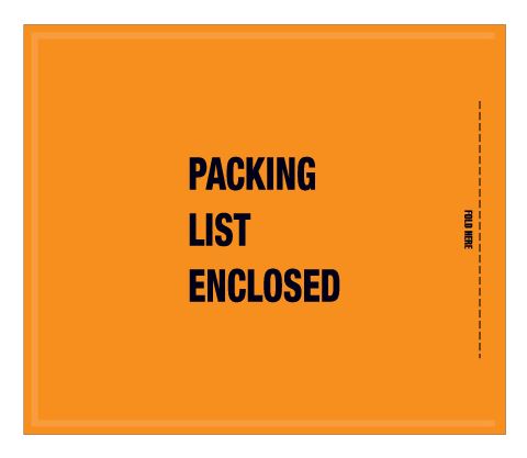 Full face, fluorescent orange Packing List Envelopes are pre-printed with "Packing List Enclosed", "Important Papers" and "Do Not Destroy" warnings on heavy 2 Mil poly