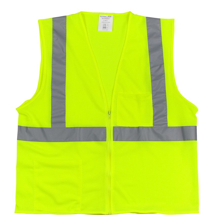 ANSI Class 2 Two Pocket Lime Yellow Zipper Mesh Vest - 3X Large |