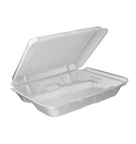 Dart 9.5" x 9.3" x 3" Foam Hinged Lid Container 3 Compartment - White, 100/Pack