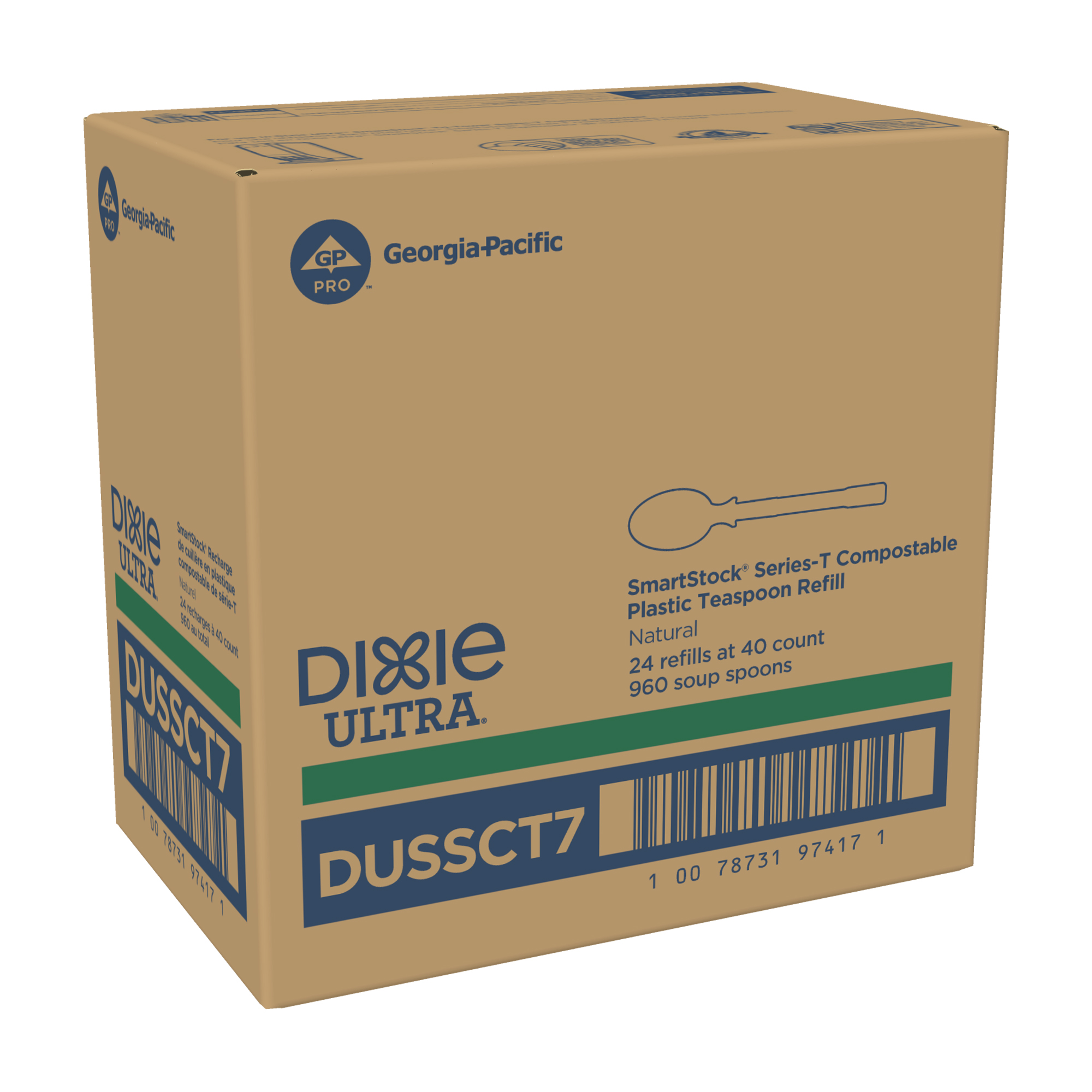 GP Pro DUSSCT7 Dixie Ultra SmartStock Series-T Compostable Plastic Spoon Refill - 40 count x 24 refills |