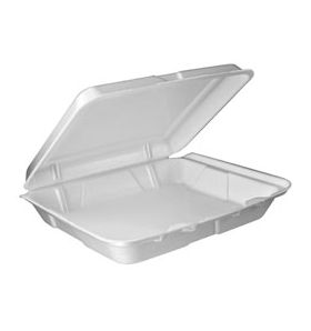Dart 9.5" x 9.3" x 3" Foam Hinged Lid Container 1 Compartment - White, 100/Pack |