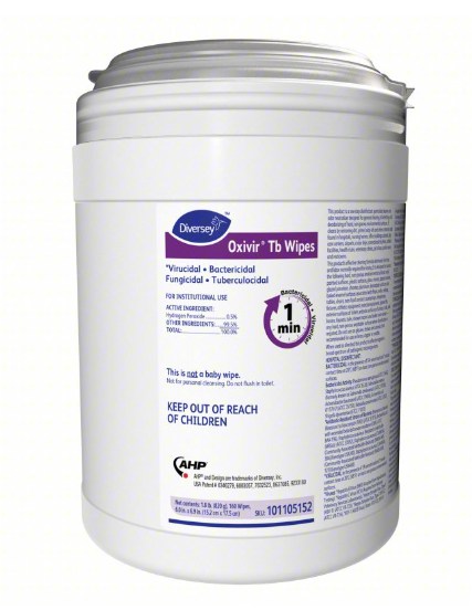 Diversey Oxivir Tb One-Step Disinfectant Cleaner and Deodorizing Wipes 101105152 - 6"x7", 160 ea, 4 per case