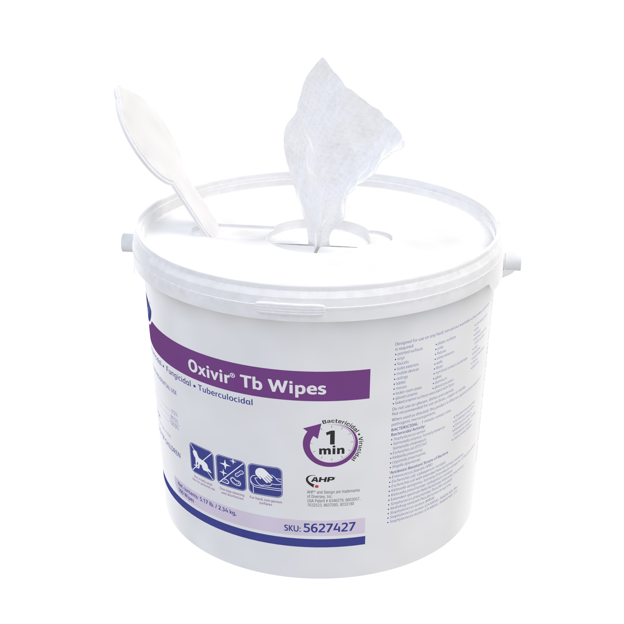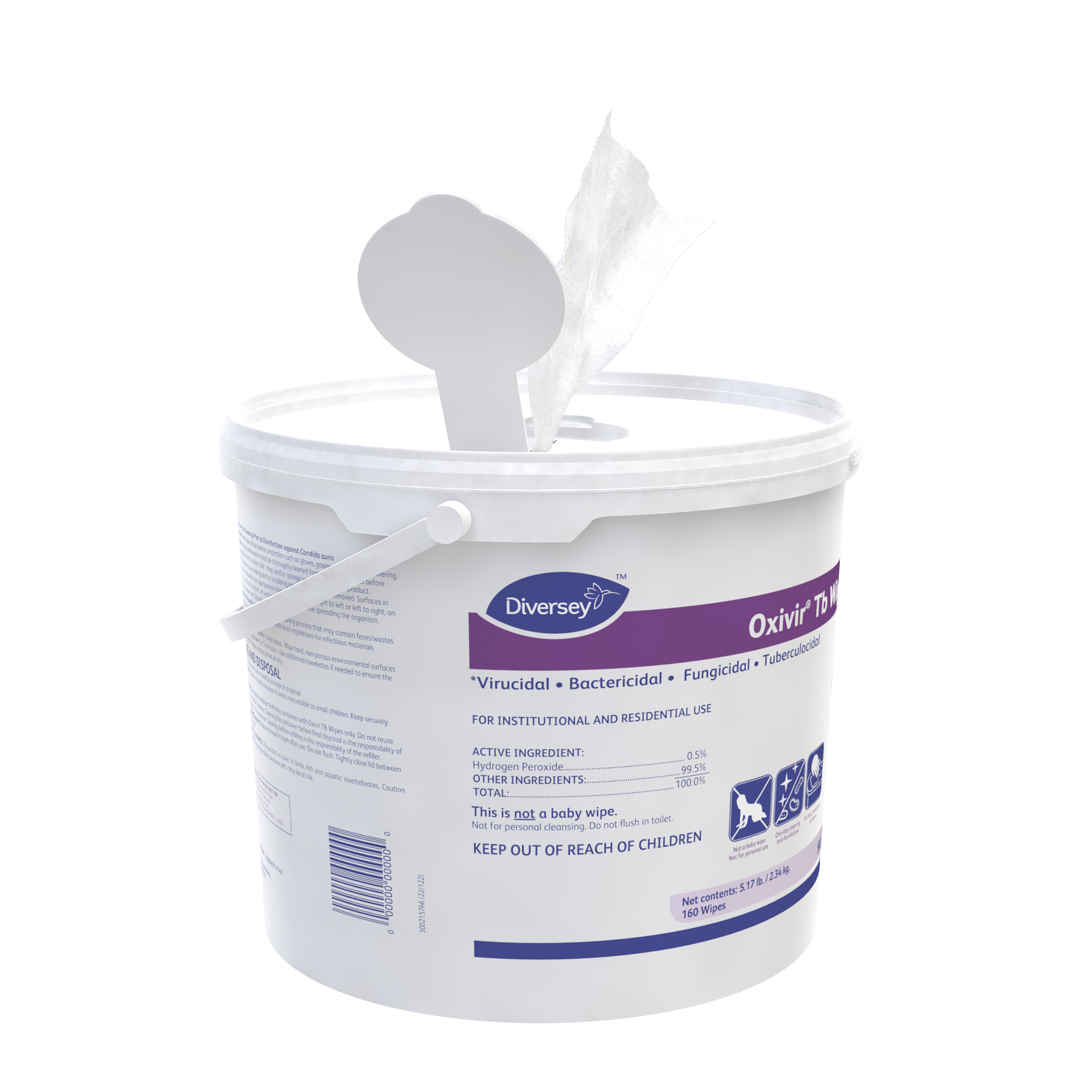 Diversey Oxivir Tb One-Step Disinfectant Cleaner and Deodorizing Wipes 5627427 - 11"x12", 160 ea, 4 per case |