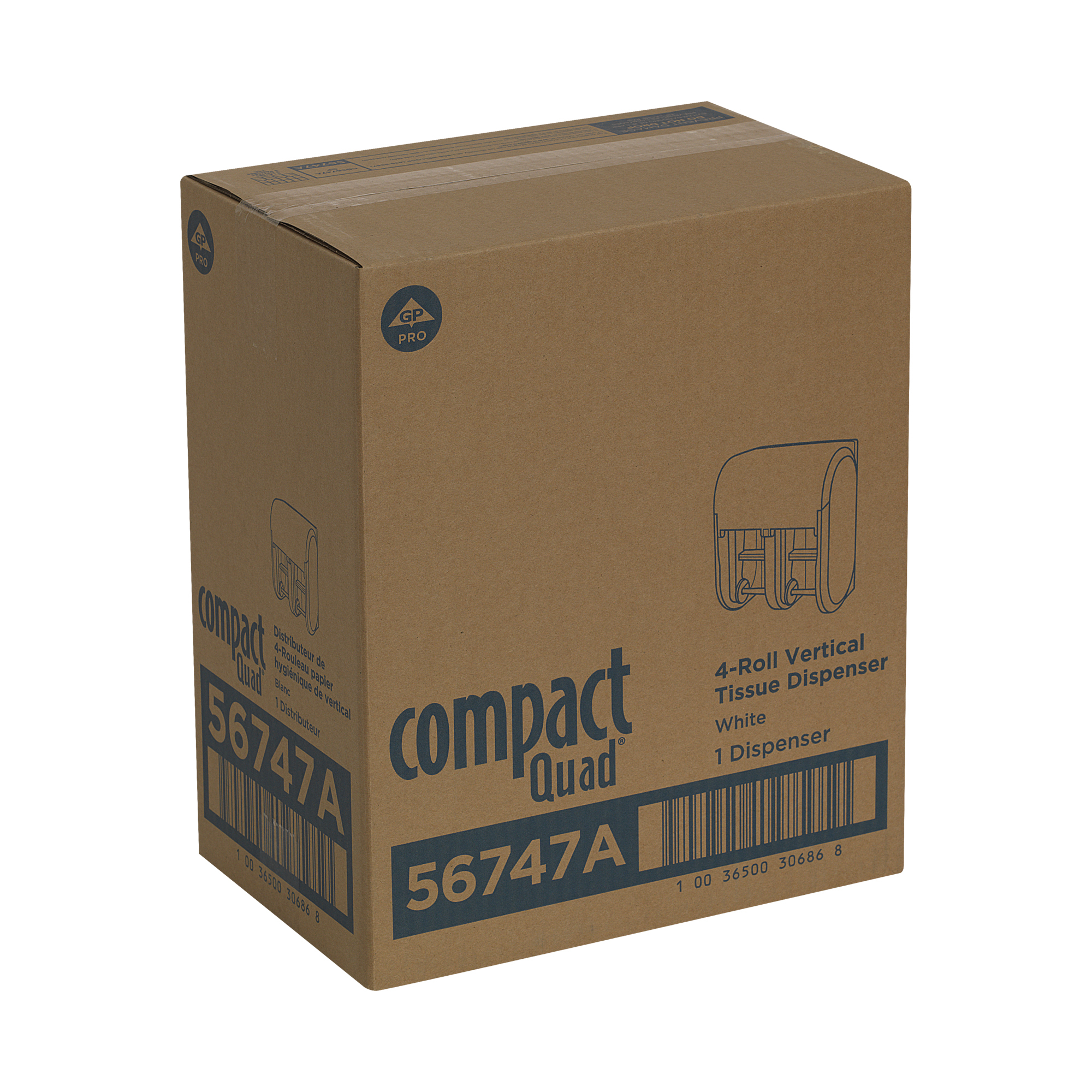 GP Pro 56747A Compact Coreless High Capacity Vertical Four Roll Bathroom Tissue Dispenser - White