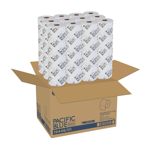 GP Pro 19448/01 Pacific Blue Basic 2-Ply High Capacity Standard Bathroom Tissue - 1000 Sheets, 48 Rolls per Case |