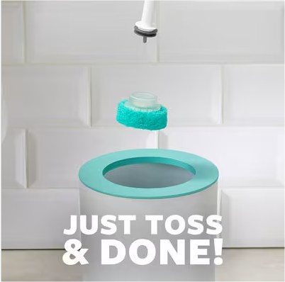 Disposable toilet cleaning pads get ejected directly into the trash, reducing the after-clean clean-up