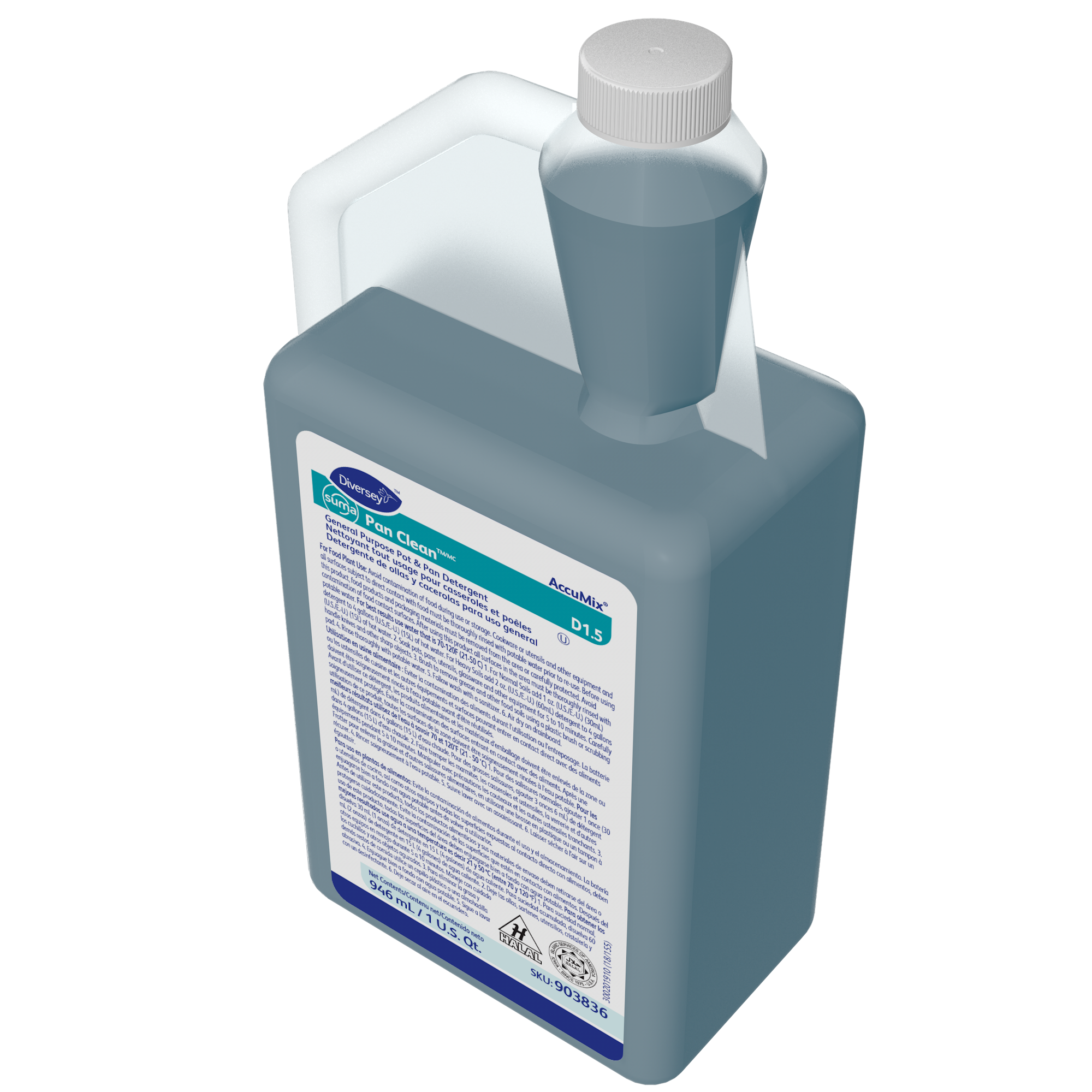 Diversey Suma Pan-Clean General Purpose Pot & Pan Detergent 101109768 - 32 Ounce AccuMix Bottle