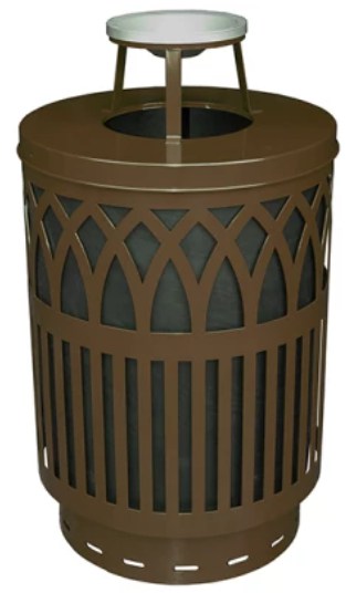 WITT Covington Collection Galvanized Laser Cut Waste Receptacle with Ash Tray Top - 40 gallon, Brown |