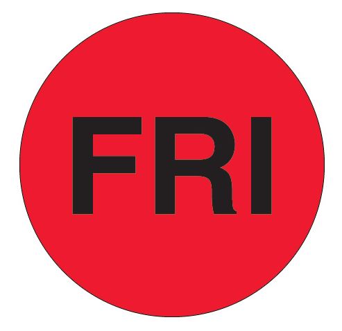 1" Circle Fluorescent Red "FRI" Days of the Week Labels