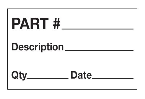 1.25" x 2" White with Black "Part# - Description - Qty - Date" Labels