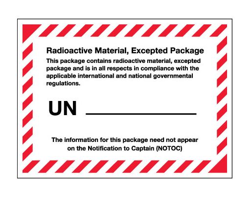 4.375" x 3.25" Black White Red "Radioactive Material, Excepted Package" Labels |