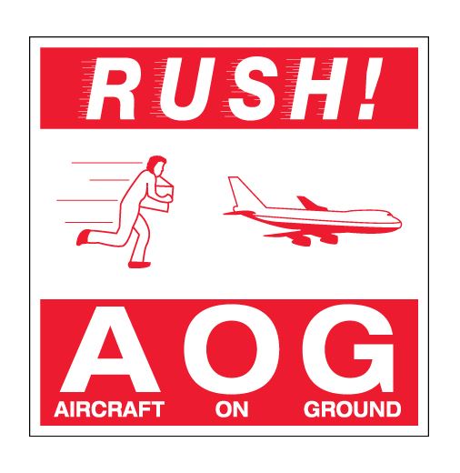 4" x 4" Red & White "Rush AOG - Aircraft On Ground" Labels