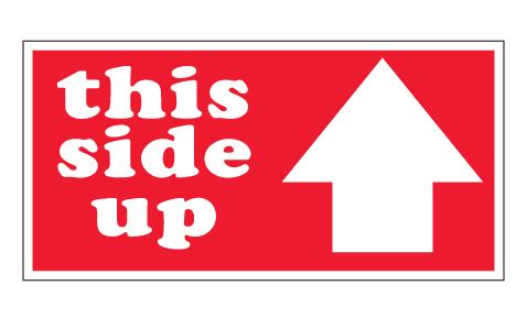 2" x 4" Red with White "This Side Up" Arrow Labels |