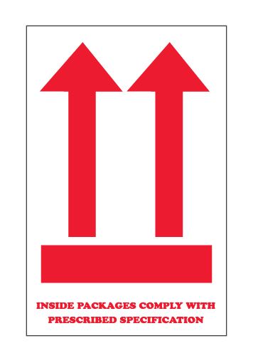 4" x 6" White with "Inside Packages Comply..." Arrow Labels |