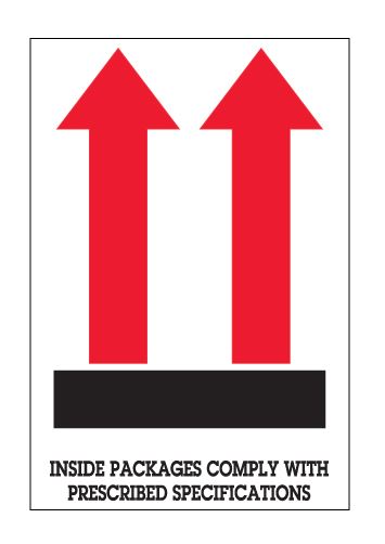 4" x 6" White with Red & Black "Inside Packages Comply..." Arrow Labels |