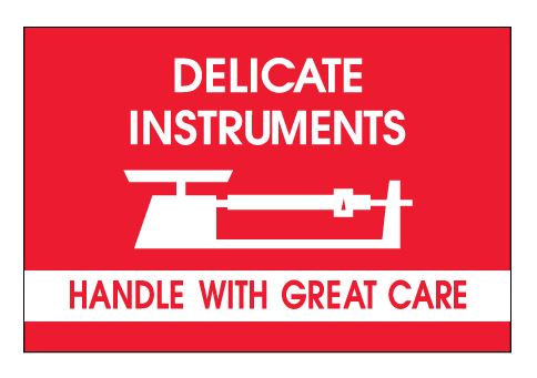 2" x 3" Red with White "Delicate Instruments - Handle With Great Care" - Fragile Labels