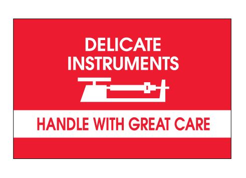 3" x 5" Red with White "Delicate Instruments - Handle With Great Care" - Fragile Labels |