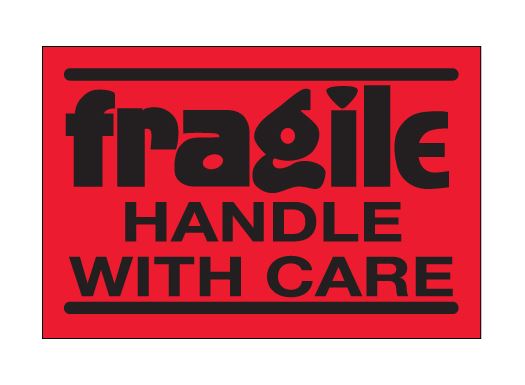 2" x 3" Fluorescent Red "Fragile - Handle With Care" Labels |