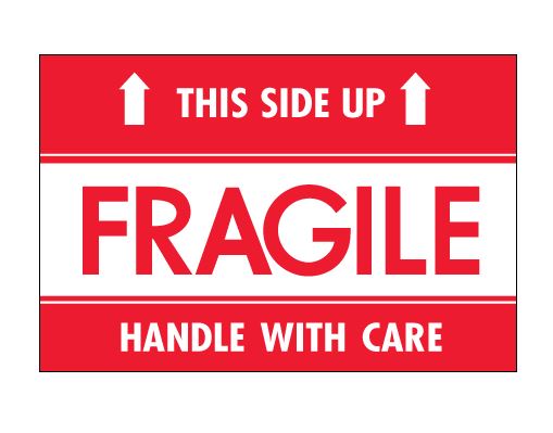 2" x 3" Red & White "Fragile - This Side Up - HWC" Labels |