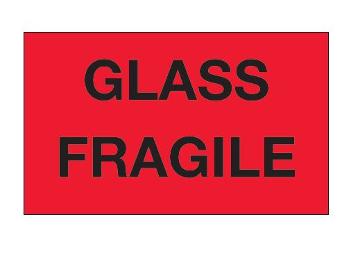 3" x 5" Fluorescent Red "Glass - Fragile" Labels |