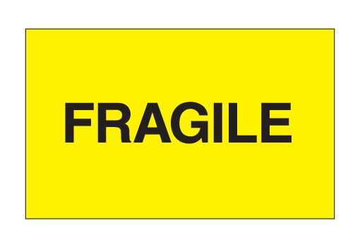 3" x 5" Fluorescent Yellow "Fragile" Labels