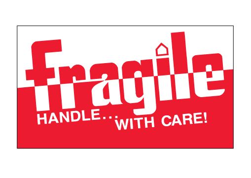 3" x 5" Red & White "Fragile - Handle... With Care!" Labels