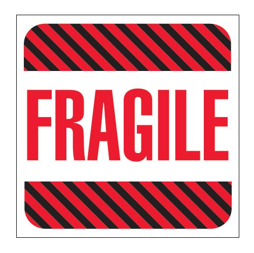 4" x 4" Red White & Black Striped "Fragile" Labels