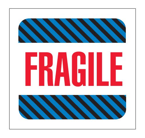 4" x 4" White & Blue, Red, Black Striped "Fragile" Labels |