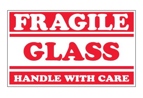 3" x 5" Red & White "Fragile - Glass - Handle With Care" Labels