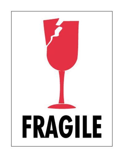 3" x 4" White with Red & Black "Fragile" Labels