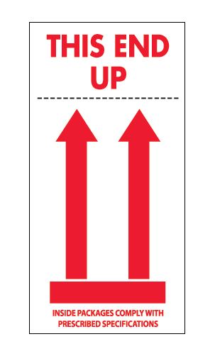 4" x 8" White with Red & Black "This End Up - Inside Packages Comply" Labels