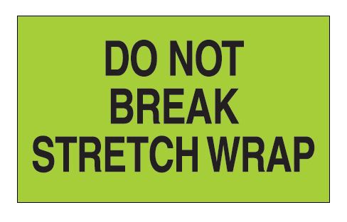 3" x 5" Fluorescent Green "Do Not Break Stretch Wrap" Labels |