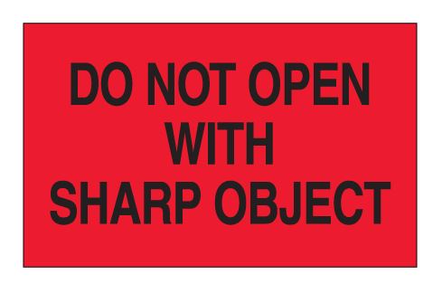 3" x 5" Fluorescent Red "Do Not Open with Sharp Object" Labels