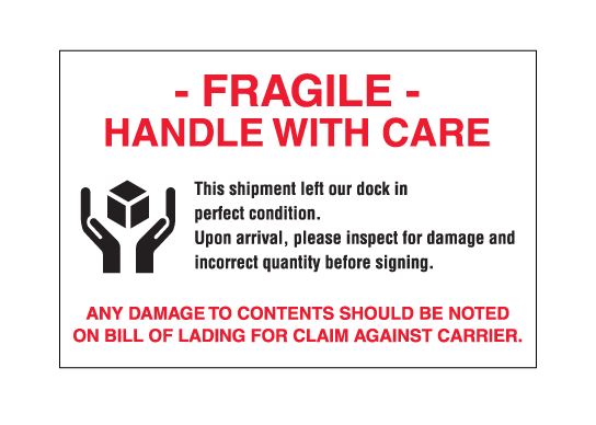 4" x 6" White with Red & Black "Fragile - Handle With Care" Labels |