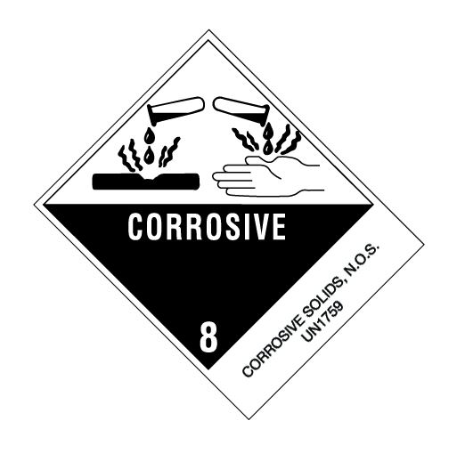 4" x 4.75" Black & White Pre-Printed "Corrosive Solids, N.O.S." Labels