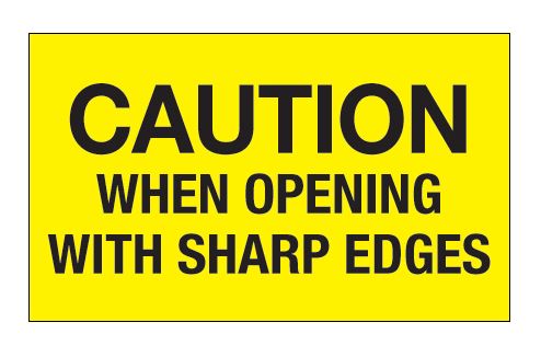 3" x 5" Fluorescent Yellow "Caution When Opening With Sharp Edges" Labels |