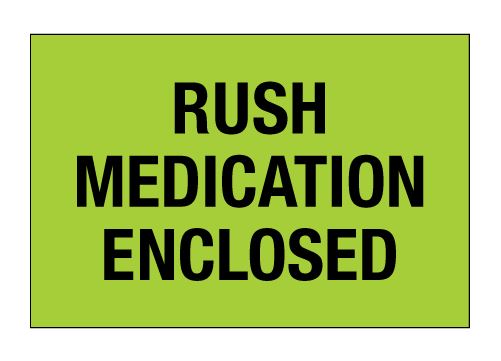 2" x 3" Fluorescent Green "Rush - Medication Enclosed" Labels